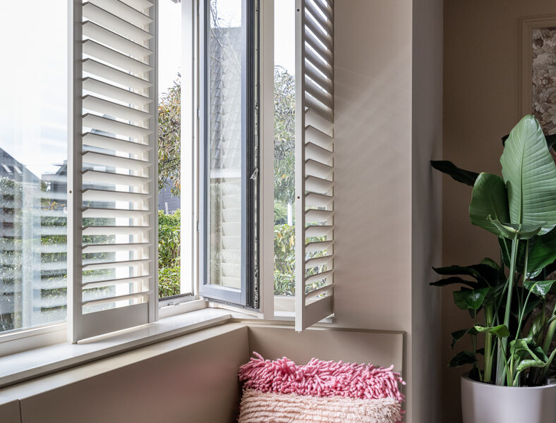 Shutters zijn bijzonder functionele, stijlvolle en tijdloze raambekleding. Shutters zijn ook nog dé ideale zonwering voor binnen om licht en privacy te regelen, bijvoorbeeld om een laagstaande zon buiten te houden. Je kunt de lamellen kantelen en zo in elke gewenste stand draaien. De panelen kun je bijvoorbeeld ook geheel open zetten. Zo zet je het zonlicht in één beweging naar jouw hand.