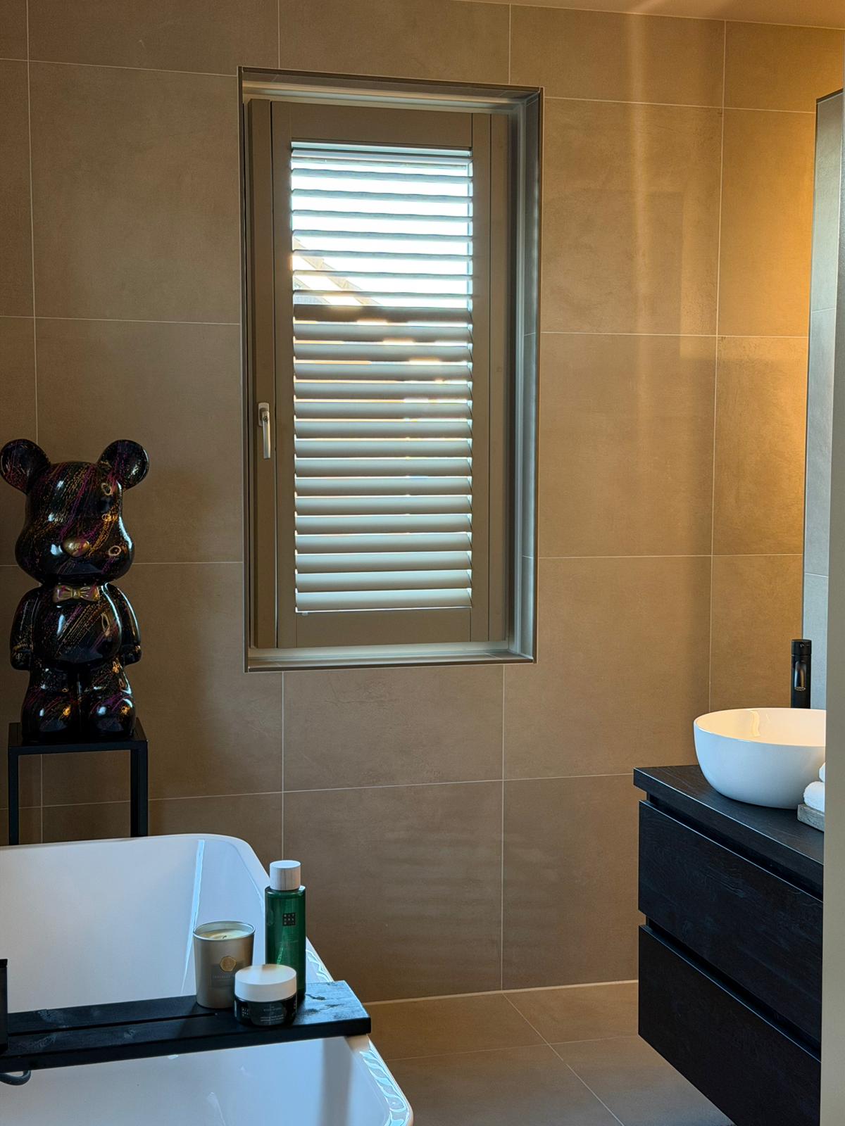 Spatwaterproof, hét kenmerk en de kracht van Aqualine shutters. Hierdoor is het de beste raamdecoratie voor vochtige ruimtes zoals de badkamer. Deze shutters maken we namelijk helemaal van kwalitatief hoogwaardig kunststof.